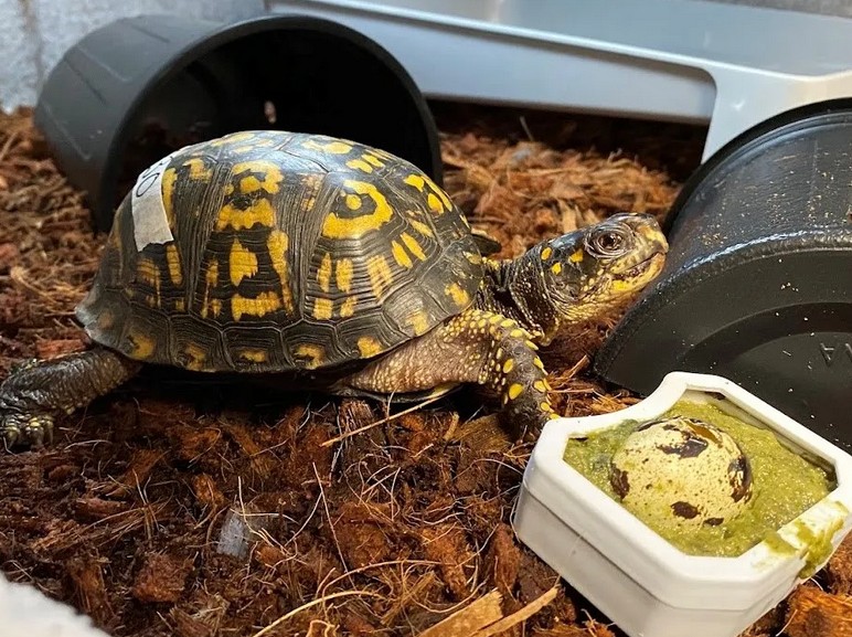 How did the pet turtle escape from the box it was in?