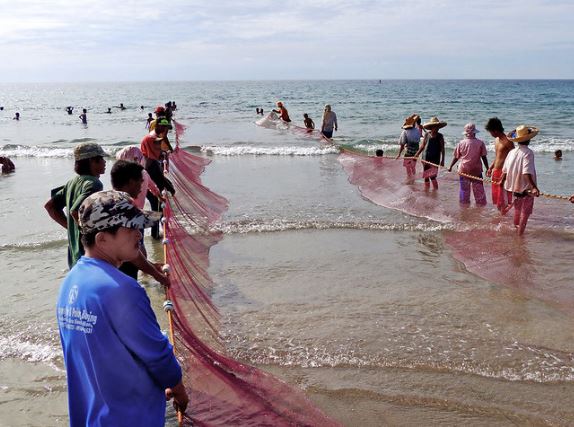 What is it called when fishermen connect their nets together to catch fish?