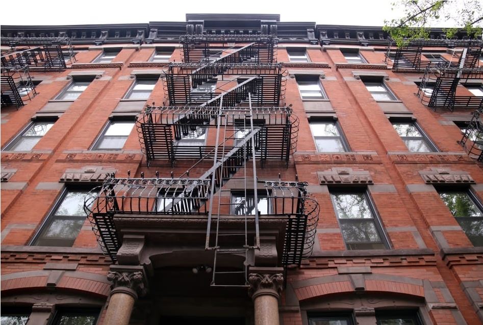 He walked down and later walked up the run-down staircase in the run-down walk-up.