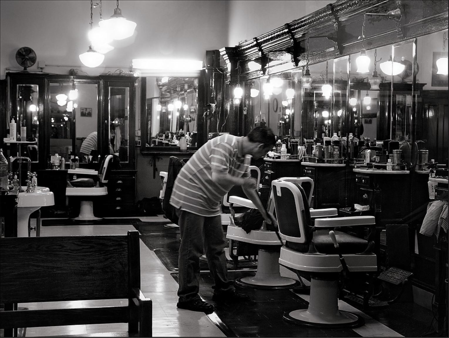 Why did George sell his barber shop?