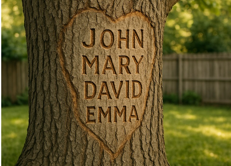 Why did the family chissel their names in the tree in the backyard?