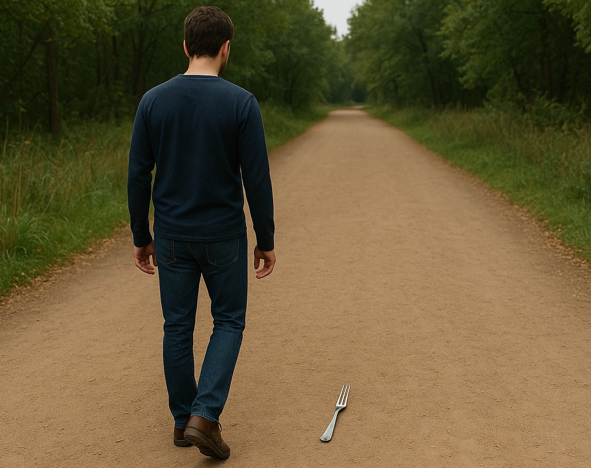 Because he came to a fork in the road, and he can't decide what way to go.