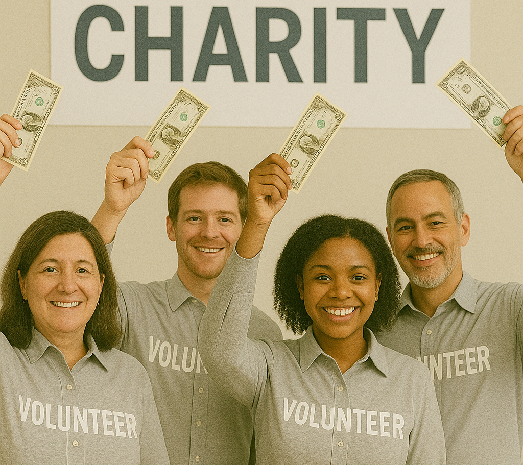 Why were the people who worked for the charity holding dollars over their heads?